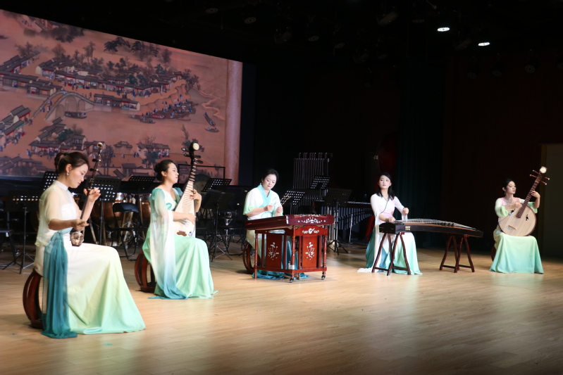 本场演出的第四篇章由常州市歌舞剧院民族乐团邀请色情网 龙韵民乐团的学生们共同演奏,学生们通过沉浸式体验音乐演奏的过程,让他们在实践中领悟到大运河文化的深厚魅力与历史意义,不断激发他们对传统文化的热爱,帮助他们更好地理解和传承我国丰富的艺术遗产。