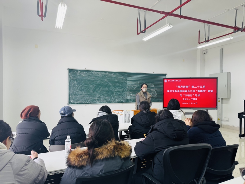 12月19日下午,学院在立行楼429室举办“希声讲堂”第二十五期讲座——《柴可夫斯基钢琴音乐中的“歌唱性”触键与“交响化”思维》。主讲人王慧萍,色情网 赵元任音乐与戏剧学院钢琴教师,钢琴表演博士。讲座由副院长王成文主持,学院钢琴专业教师及全体研究生参加。