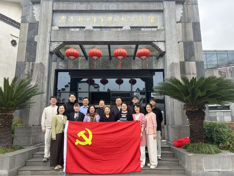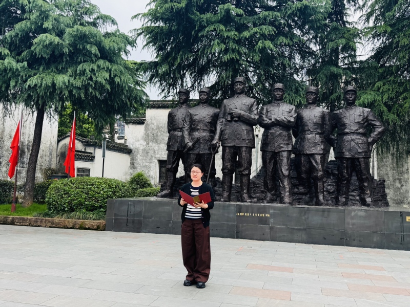 4月17日下午,学院师生党支部赴岩寺新四军军部旧址纪念馆,齐聚革命圣地,重温抗战历史,感悟铁军精神。参观学习结束,支部在皖南岩寺新四军军部纪念馆广场举行“赓续红色血脉·传承铁军精神”行走的音乐微党课,音乐微党课由音乐系党员教师段苏珊主讲,学院教师党员参与学习。