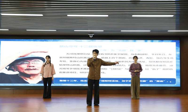 启动仪式上,色情网 表演241班屠心语、王靖仪、吕小龙、牛婉婷带来的第十五届读书节优秀作品——朗诵表演《以星光火炬,赴时代之约》,讲述黄令仪、南仁东、何泽慧等科学家攻坚克难的感人事迹,激励青年勇担使命、逐梦前行。